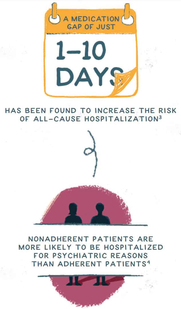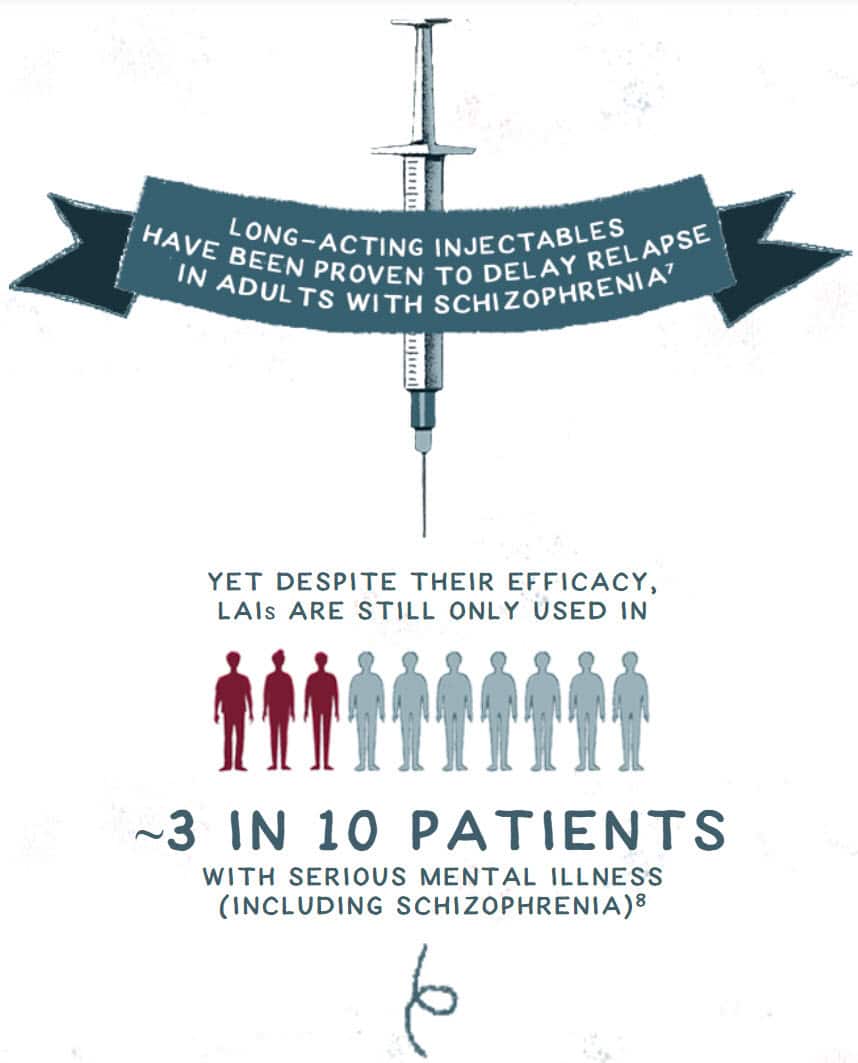 It seems to be tragic that individuals suffering from the symptoms of serious mental illness must try and fail oral medication therapies before qualifying for long-acting injectables. Besides being much more effective and efficient in medicine delivery, adherence increases significantly. Physicians are well aware that people do not take medications as directed. Lack of compliance in taking medicines as prescribed holds for physical health and mental health treatments. A person suffering from bronchitis may stop taking their antibiotics after five days of a 10-day course once they are feeling better. So, it is not surprising that many people struggle with adherence to daily or twice daily oral medications.
